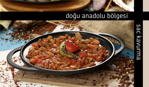 Doğu Anadolu Bölgesi denince akıllara hayvancılıkla uğraşan köylerimiz ve haliyle kebabından köftesine envaiçeşit et yemekleri geliyor. Bölgede neredeyse her şehirde bulabileceğiniz sac kavurma ise hem pratik yapımı hem eşsiz lezzetiyle öne çıkıyor. Minik minik doğranmış etlerin kavurma sacında çeşitli baharatlar, domates ve biberle pişirildiği yemeğin en iyi eşlikçisi ise pilav. Yöre halkı hayvancılık ile uğraştığından yöresel lezzetler pek fazla ve et süt ürünleri ile sağlıklı besleniyorlar. Kahvaltı denince akla gelen yerlerden biri Van. Buranın en güzel yanı et ile sebze yemeklerinin iç içe girmiş olması. Ama Erzurum Cağ kebabını mutlaka deneyin favoriniz olacaktır. Yedikçe tabağınıza gelen muhteşem lezzet sizi bekliyor. Malatya, Kars, Ardahan, Iğdır, Van, Erzurum, Erzincan, Bitlis, Muş, Hakkâri, Elâzığ, Bingöl, Ağrı ve Tunceli illerinin bir araya getirdiği Doğu Anadolu Bölgesi mutfağı, çeşitli baharatlarla harmanlanmış, soğanlı et yemeklerinden oluşur. Tıpkı Güneydoğu Anadolu Bölgesi’nde olduğu gibi burada da sebzeli yemeklere pek rastlanmaz. Doğaba, murtuğa, cağ kebabı, hangel, çiriş ketesi, evelik sarması ve kayısılı kavurma yörenin önemli yiyecekleridir.